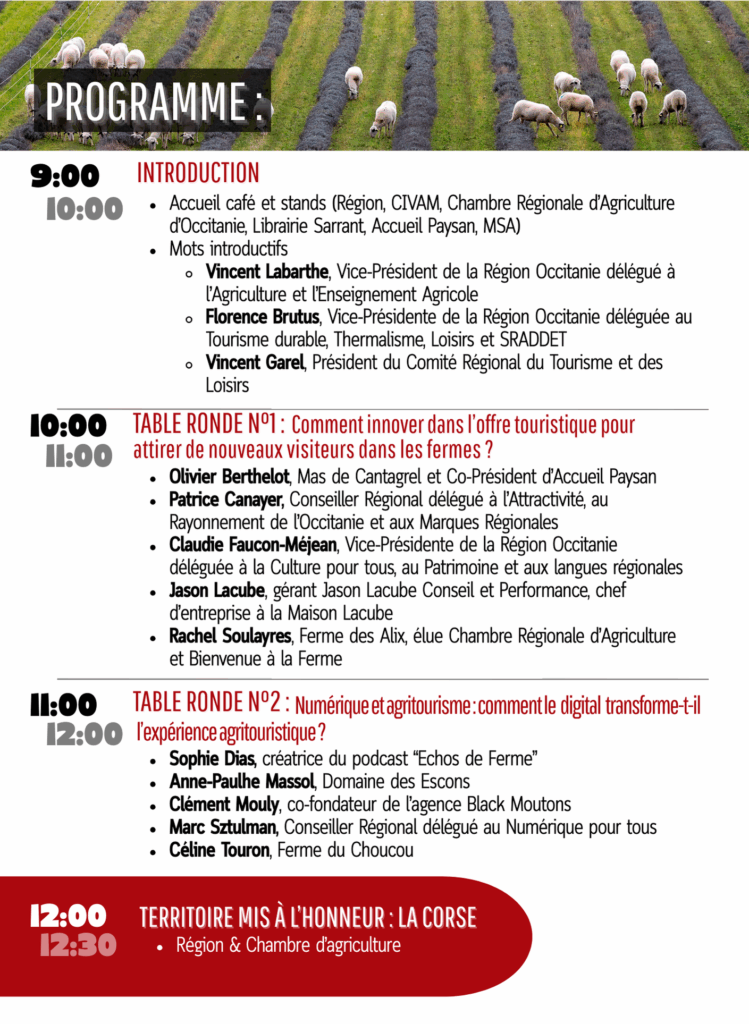 Cette journée sera dédiée aux échanges, à l’apport d’actualités sur la filière via le regard d’experts, et la valorisation d’initiatives innovantes. C’est un moment clé pour lever les freins et converger vers une stratégie agritouristique régionale !