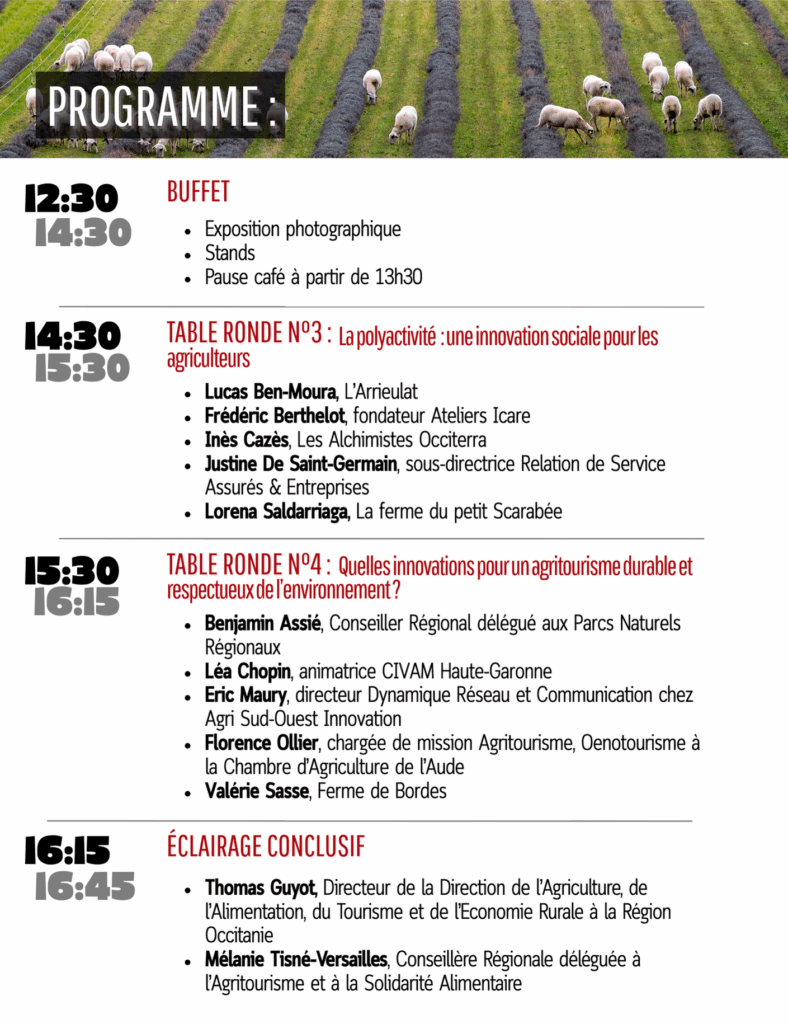 Le réseau des Chambres d’Agriculture, partenaire de l’événement, vous convie aux Assises de l’Agritourisme qui se tiendront le jeudi 16 octobre 2025 de 9 h à 17 h au lycée agricole d’Auzeville-Tolosane (31) sur le thème de l’Innovation.