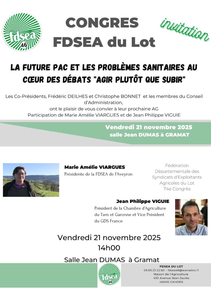 Actualité novembre 14, 2025 Aucun Commentaire 523 FDSEA : en congrès à Gramat le 21 novembre ✍️ TEST SIGNATURE