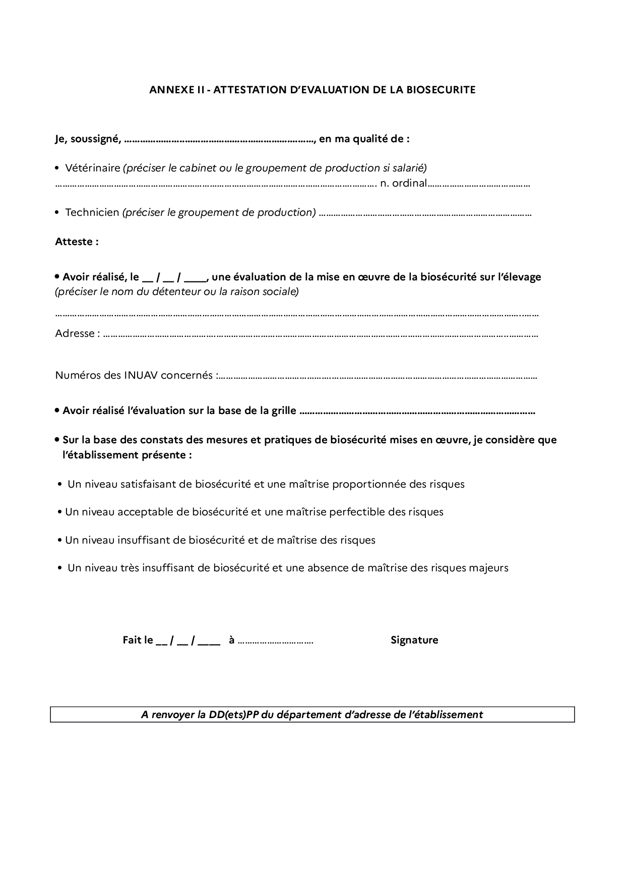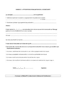 - la réalisation d’un audit biosécurité annuel (ou biannuel) ;